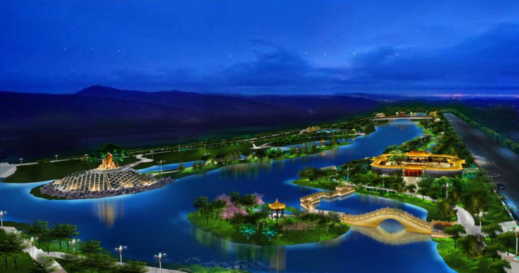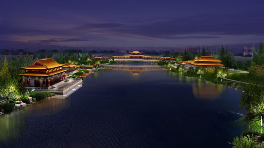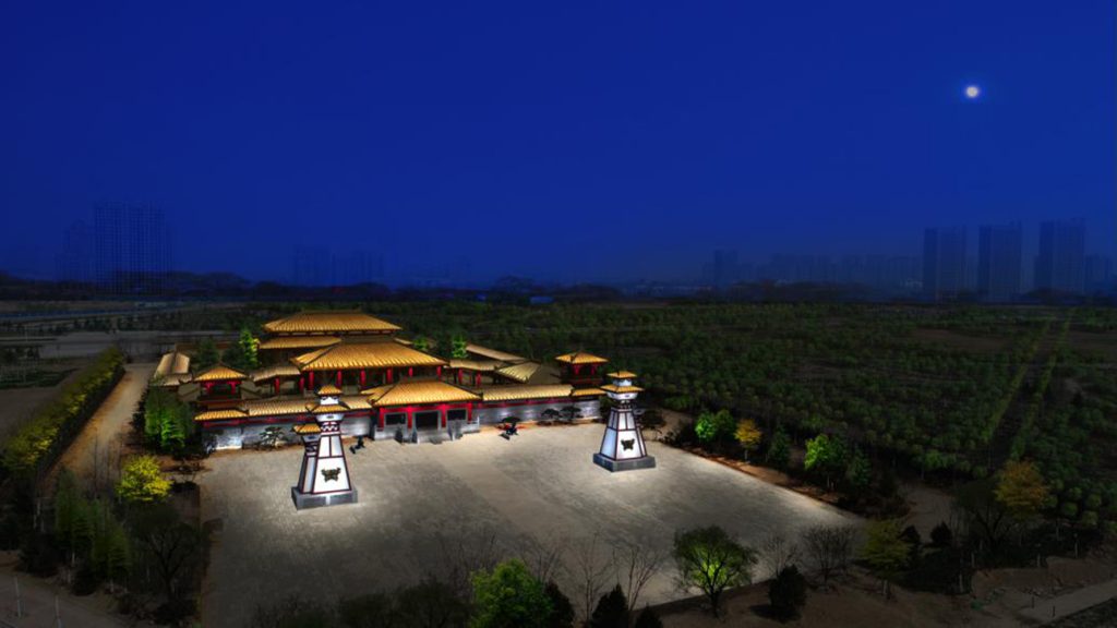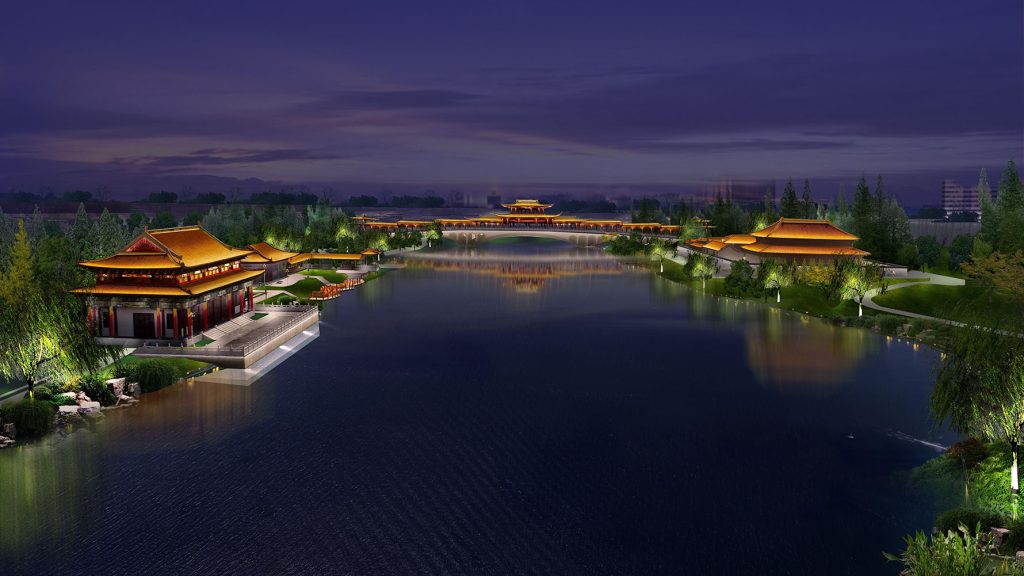 This is a prime example of Ancient Building Lighting Design paired with Cultural tourism lighting planning and design. Our floodlighting design outlines the traditional buildings’ golden roof contours, while architectural lighting design accentuates intricate details. Outdoor lighting design brightens adjacent green spaces, and water reflections amplify the tranquil, grand ambiance. The scheme transforms the area into a captivating nocturnal landmark, ideal for cultural tourism experiences.