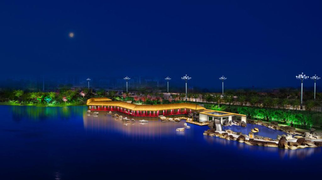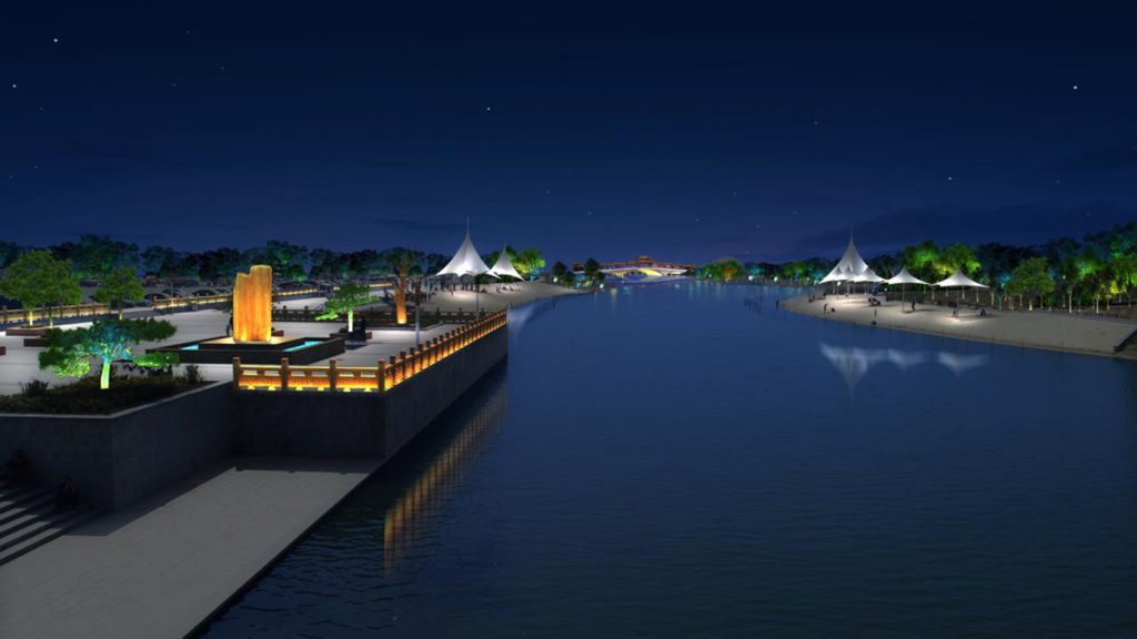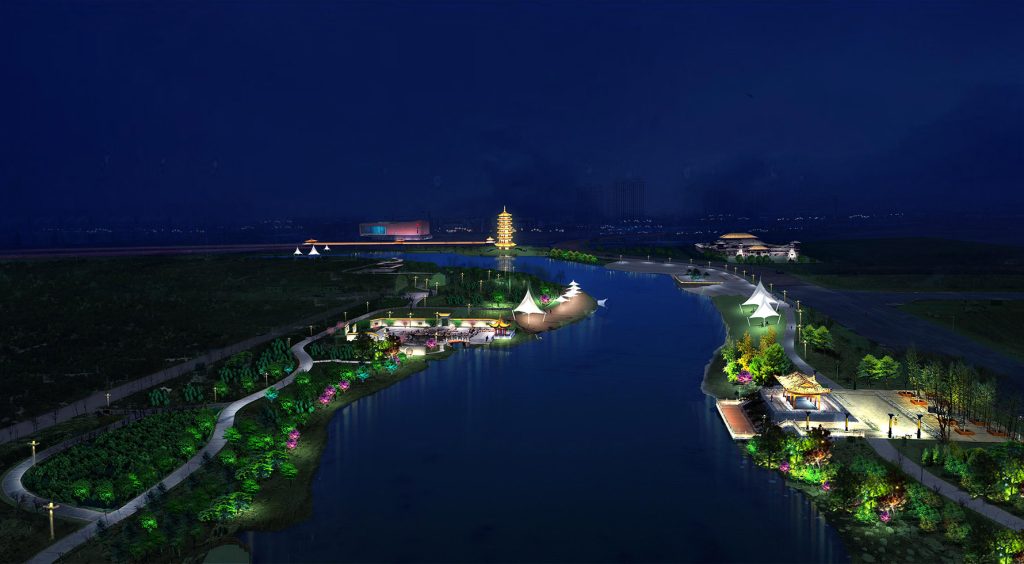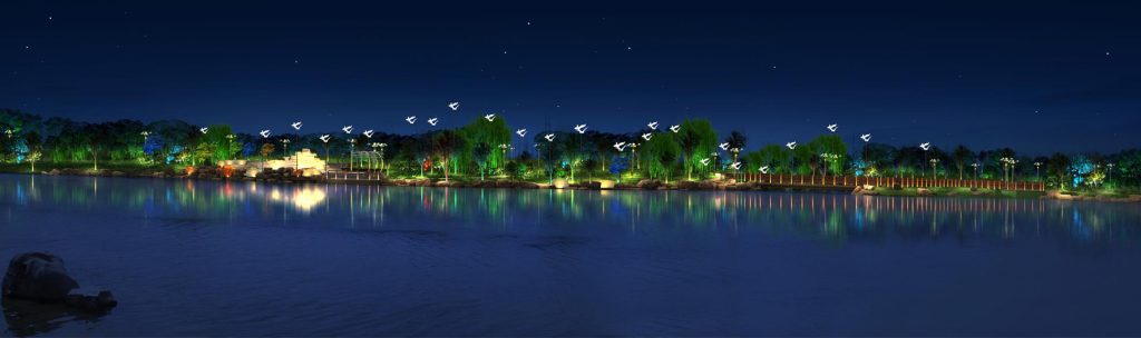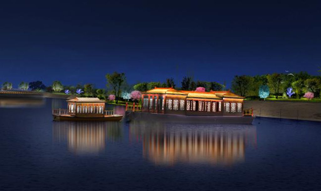 This waterscape embodies Cultural tourism lighting planning and design for nighttime cruises. Our architectural lighting design illuminates the traditional ships’ contours, paired with outdoor lighting design for shoreline vegetation. Floodlighting design enhances surrounding scenic nodes, and the cohesive lighting design crafts a charming, immersive night cruise experience tailored for cultural tourism.