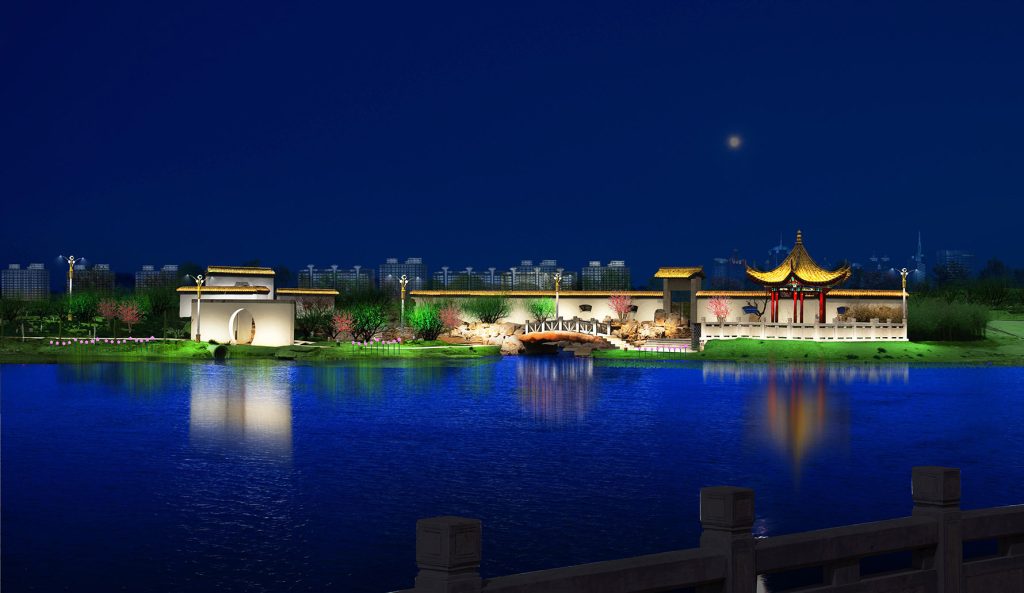 This water-network scene showcases our Cultural tourism lighting planning and design. We integrate architectural lighting design (floodlighting design) to accent buildings and bridges, paired with Park landscape Lighting Design to illuminate walkways and greenery. Outdoor lighting design enhances spatial layering, while water reflections connect scenic nodes. The scheme crafts a cohesive, tourism-friendly nocturnal environment, demonstrating how comprehensive lighting design elevates cultural tourism landscapes.