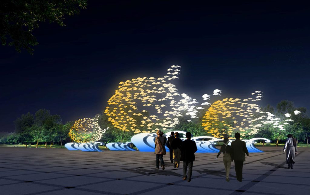This plaza’s installation exemplifies Lighting Art Sculpture Design and Landmark Building Lighting Design. We adopted layered floodlighting design (gold/white hues) for the avian structure, paired with tailored lighting design for the wave-themed base. Aligned with Cultural tourism lighting planning and design, our outdoor lighting design illuminates the open plaza, turning this artistic installation into an engaging nocturnal focal point that elevates tourist experiences.