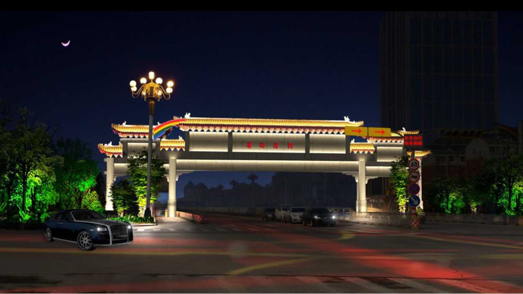 This image displays our Urban Lighting Planning and Design for the cultural tourism community. We integrated Illumination Design of Real Estate Complex (residential building contour lighting) with outdoor lighting design (public area illumination). The cohesive scheme balances residential comfort and tourism appeal, aligning with Cultural tourism lighting planning and design to shape a charming nocturnal scene of the community.