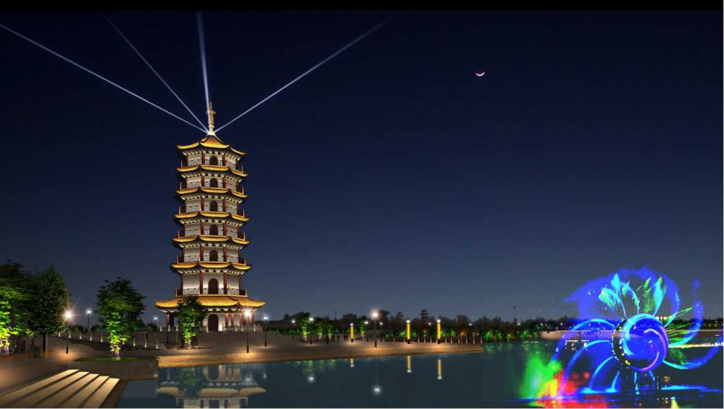 This pagoda-focused scene leverages our Landmark Building Lighting Design: Dynamic laser effects + warm floodlighting design emphasize the pagoda’s grandeur. Complemented by outdoor lighting design (landscape illumination) and Park landscape Lighting Design (walkway accents), the scheme aligns with Cultural tourism lighting planning and design—boosting its iconic allure as a striking nocturnal tourism highlight.