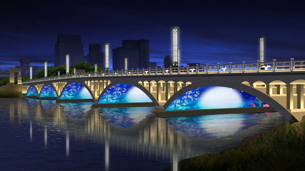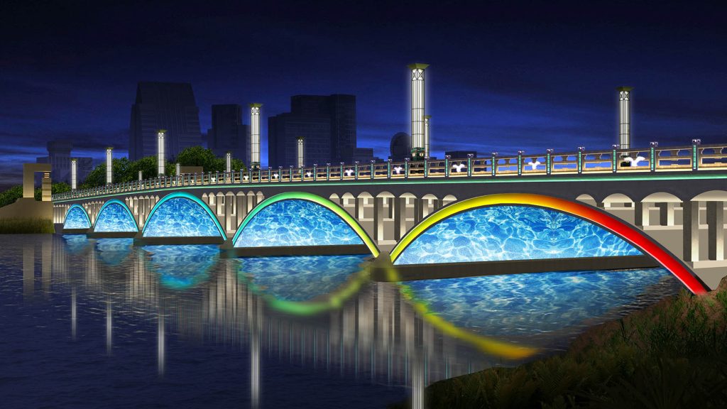 Aquatic-Themed Lighting: Dynamic Water Patterns on Bridge Arches