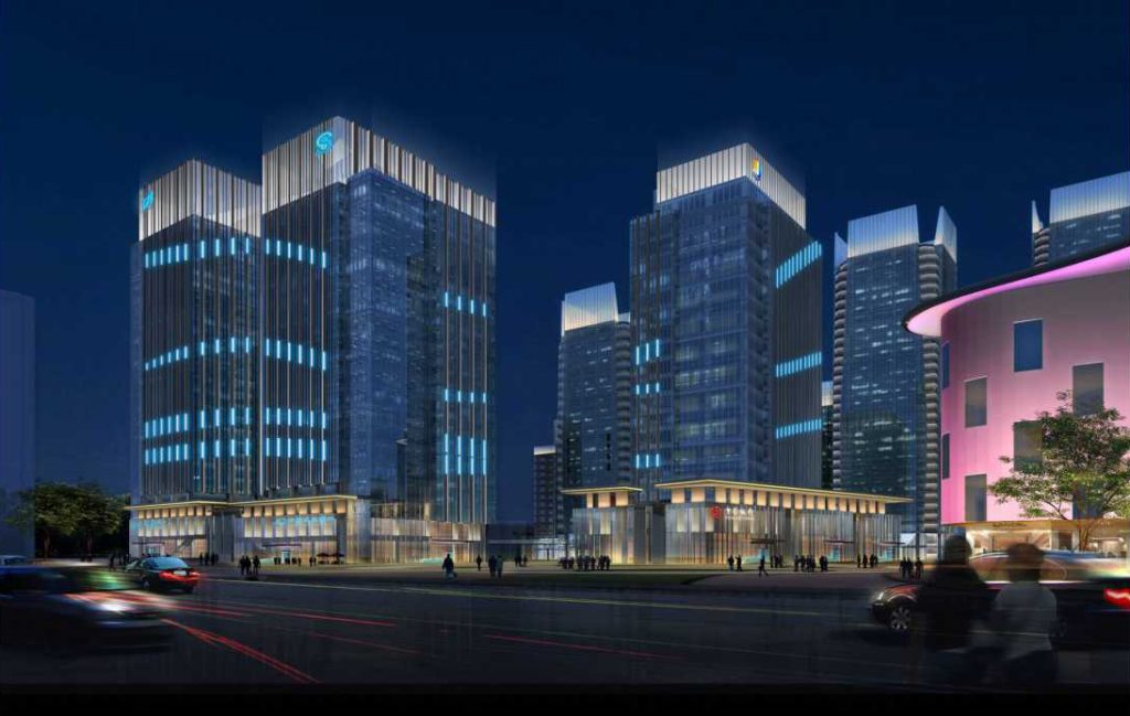 This dual-tower complex shines with strategic lighting design: vertical linear architectural lighting defines the towers’ modern contours, while the podium uses vibrant outdoor lighting to accentuate commercial spaces. Flood design softens facade textures, merging functional glow with visual hierarchy. The scheme anchors city landmark illumination design—where light design balances sleek aesthetics with urban visibility, crafting a luminous nocturnal focal point.
