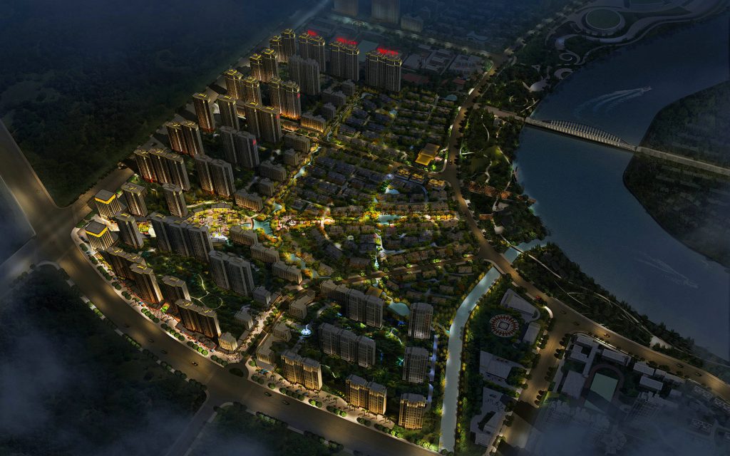 This large-scale residential complex features a cohesive Illumination Design of Real Estate Complex. Architectural Lighting Design unifies the facade tones of clustered buildings, while Exterior Lighting Design outlines roads and water systems to guide navigation. Floodlighting Design adds layered depth to the overall layout, enhancing the community’s nighttime recognition and creating a harmonious residential atmosphere.